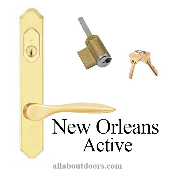 Choose Function:Active - Used on the primary functioning door. Cylinder holes on interior and exterior both. Includes lock cylinder with thumb turn and key set.Inactive - Used on an inactive panel. Cylinder hole on the interior only. Includes half lock cylinder with thumb turn only.Dummy - Handle levers are in a fixed position and will not move. No cylinder hole in either backplate.