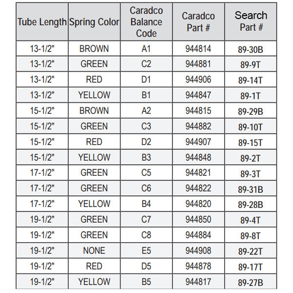 Caradco C-100 Wood Window Tube Balances, 30-1/2" Length - Choose Color