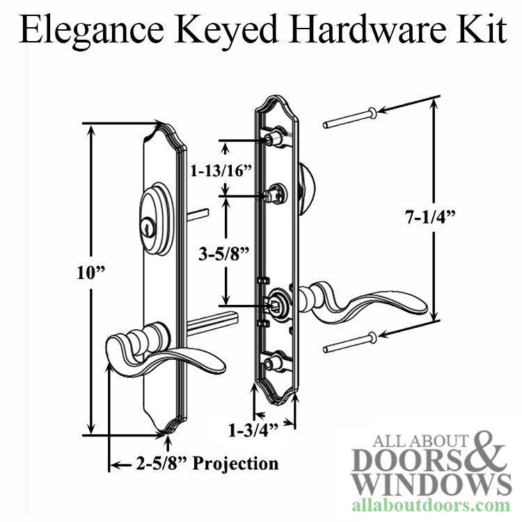 Part Number: 395004-W Price: $143.98 to $271.26True Elegance 10 inch active keyed handle hardware for hinged doors.