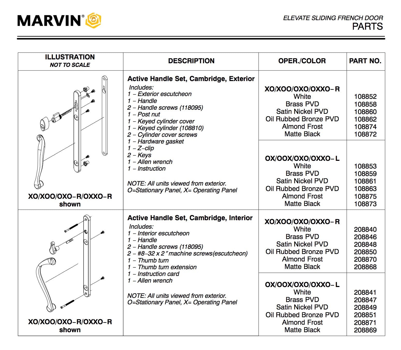Part Number: 395230-AFExterior Only Active Keyed, Right Hand Sliding French Door handle. Marvin Elevate and Essential collections ( formally Integrity Wood-Ultra )