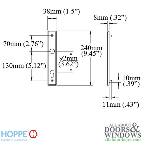 Replacement backplate to be used with HOPPE multipoint lock trim sets (handlesets)